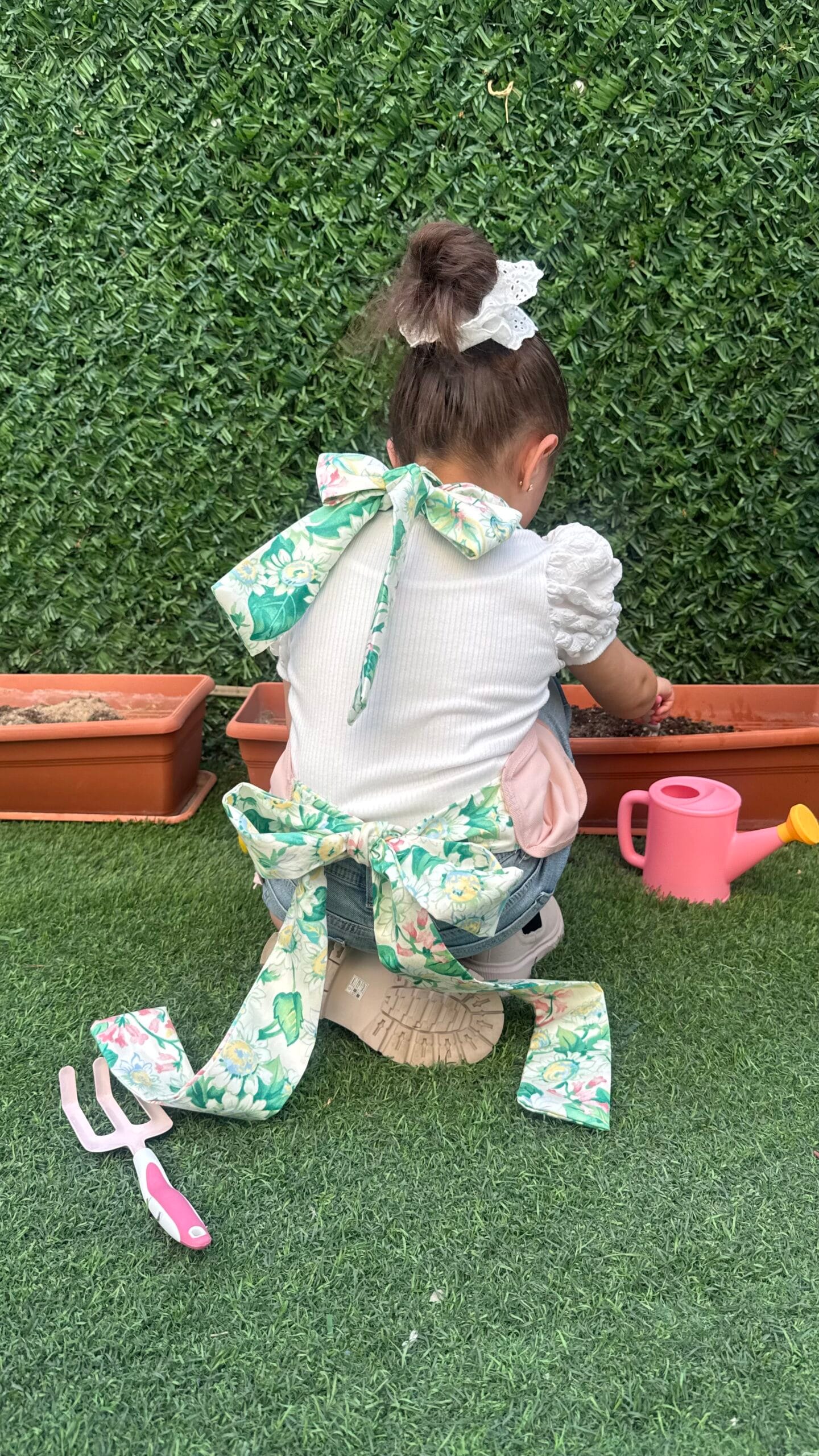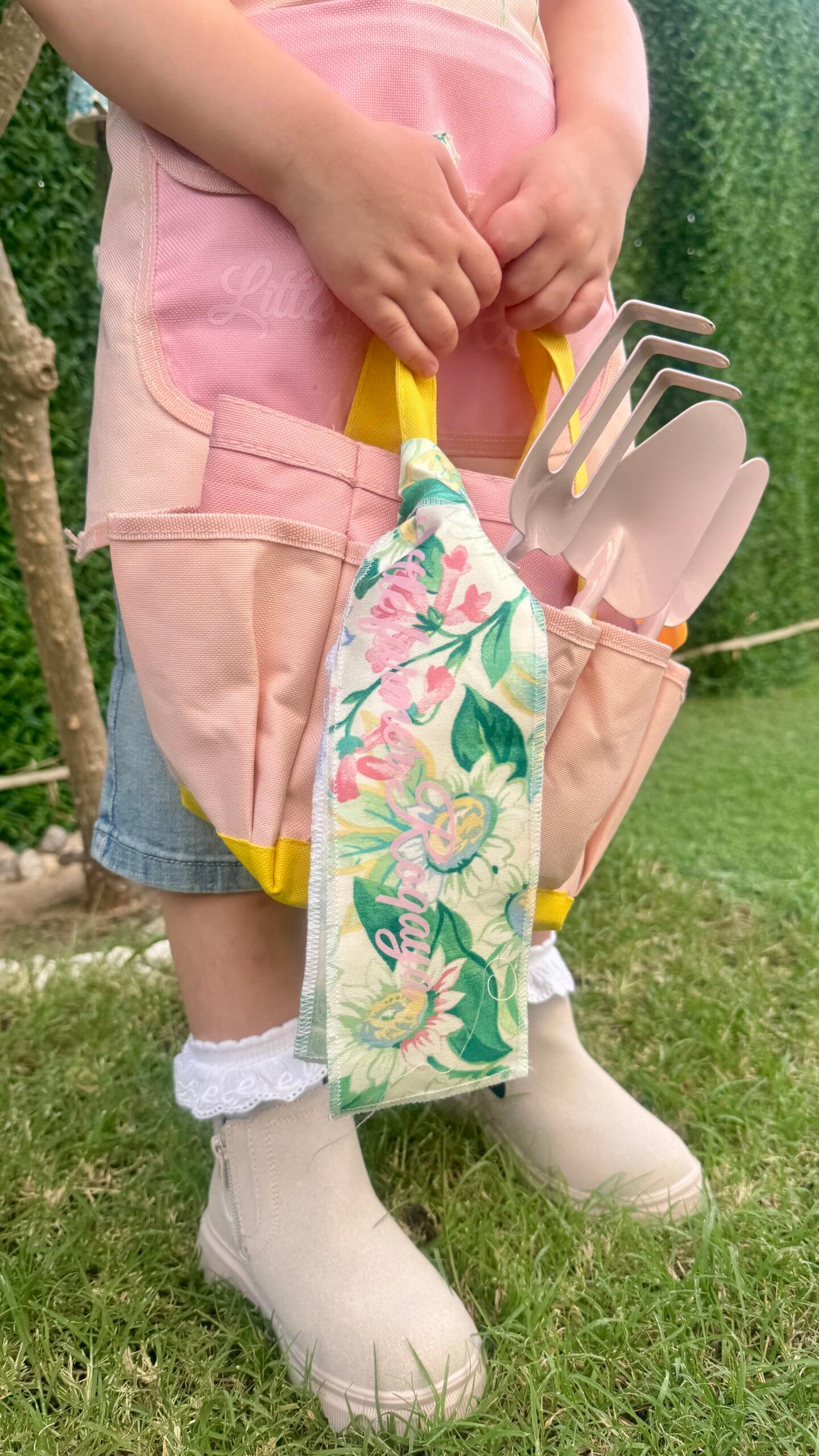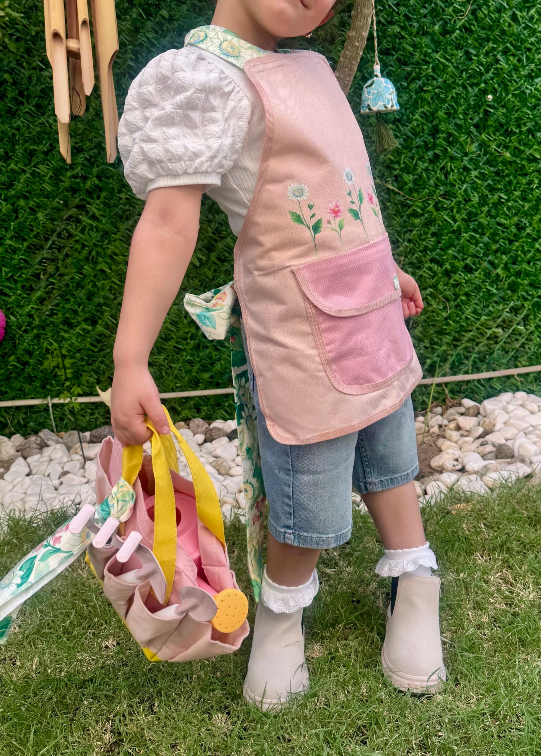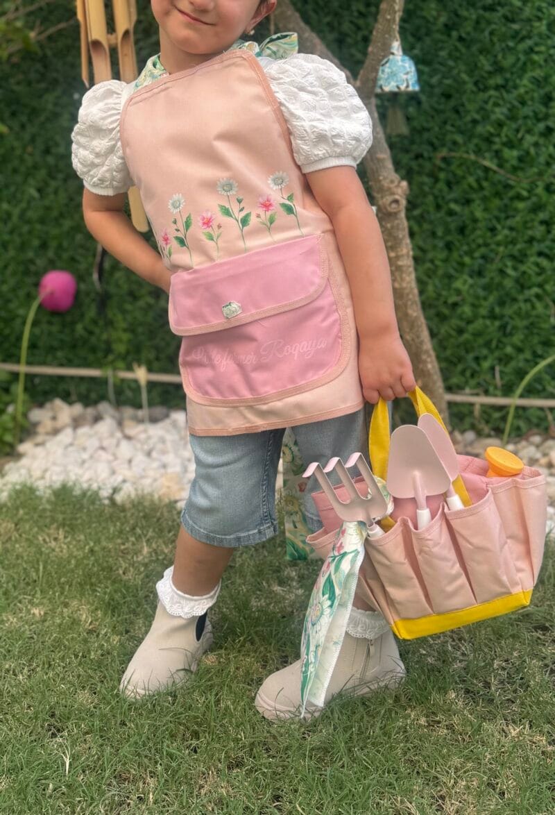 القطعة تتكون من المريلة + أدوات الزراعة مع الحقيبة + طباعة الاسم على الحقيبة و المريلة